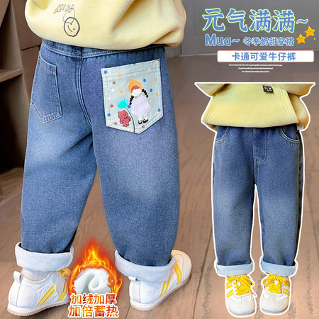 1*6收藏“口袋小猫加绒牛仔裤子”